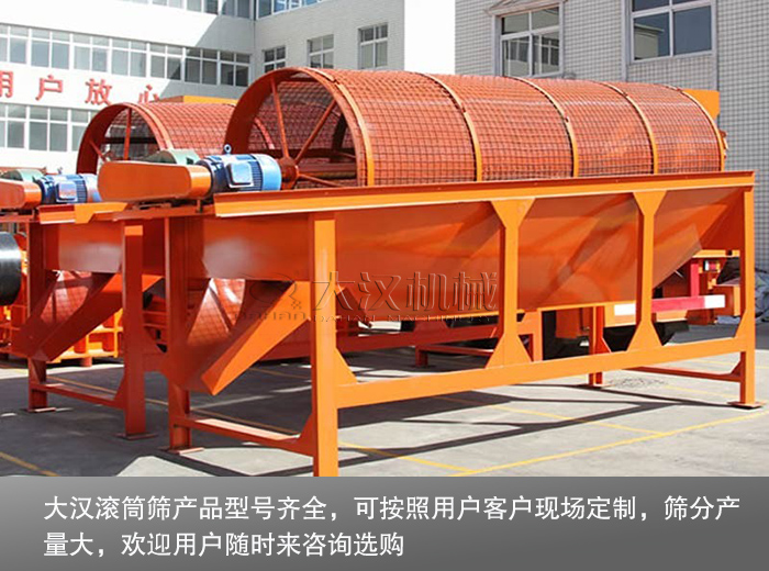 以上是對滾筒篩分類的介紹,大漢滾筒篩產品型號齊全,可按照用戶客戶現場定制,篩分產量大,歡迎用戶隨時來咨詢選購。