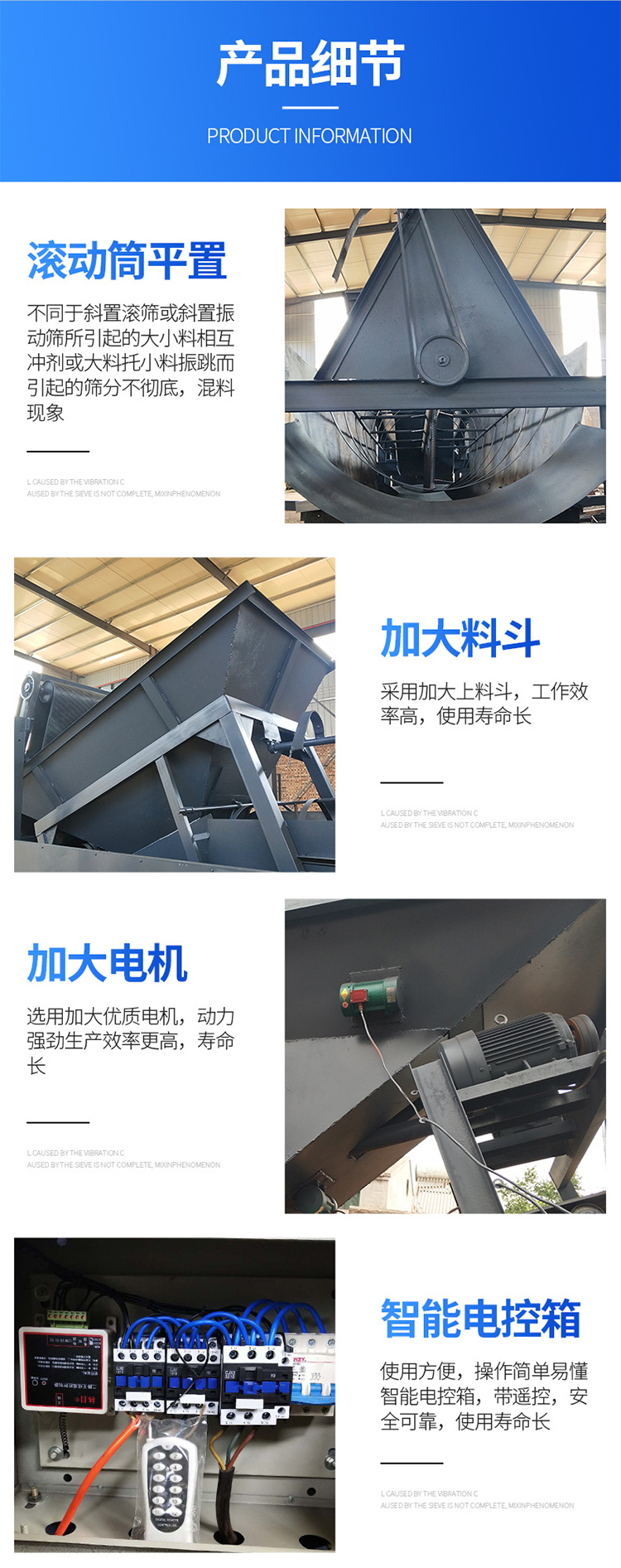 5、無粉塵污染,全封閉結構,在篩分過程中不會產生大量的粉塵,物料不易泄漏。