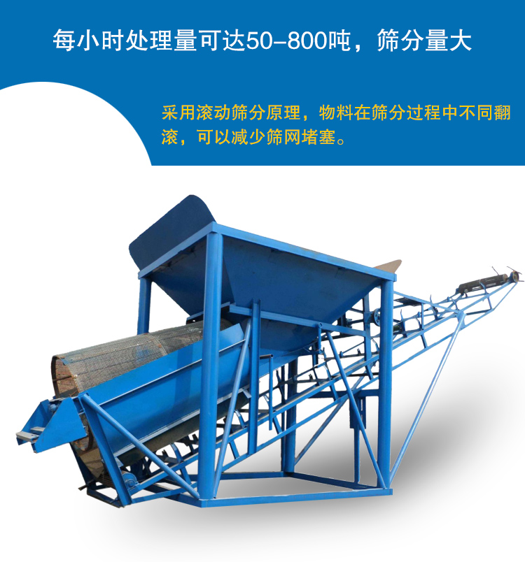 大型滾筒篩又叫大型滾筒篩沙機,是指針對產量較大的用戶選擇的型號,采用滾筒篩分原理,利用物料的顆粒大小來完成分級,克服了圓振動篩和直線篩在篩分較濕物料時出現的篩網堵塞問題,提高了篩分效率。